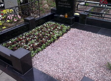 В этом заказе необходимо было создать зону цветника, зачернить швы, почистить портрет и надпись, обновить крошку и убраться на могиле.