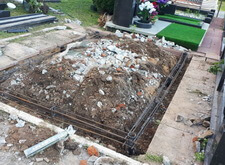 Сначала мы разобрали всё, что было на могиле: демонтировали памятник, сняли гранитный цоколь, разломали бетон.